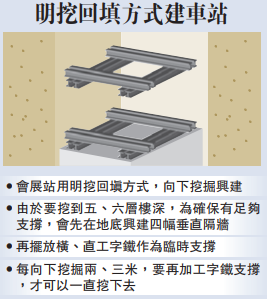 会展站工程由“礼顿─中建”联营承建,田北辰指,挖掘工程的程序是先建造两幅垂直墙身,再向下挖走墙身之间的泥土,同时在墙身之间加上横向工字铁支撑,但施工期间,港铁发现横向支撑物数量不足,已勒令停工,现未知工程状况如何。田北辰质疑,港铁高层是否得悉事件,内部沟通是否有问题。