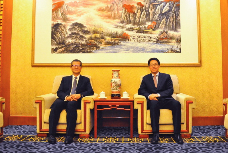 国务院港澳事务办公室主任张晓明20日中午在钓鱼台大酒店会见并宴请了香港特别行政区政府财政司司长陈茂波一行。陈茂波向张晓明介绍香港经济的最新发展,双方还就共同关心的事项交流意见。