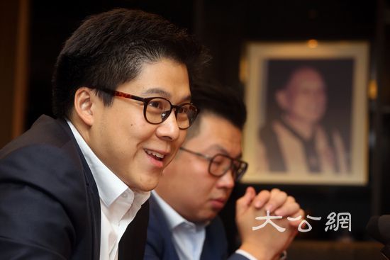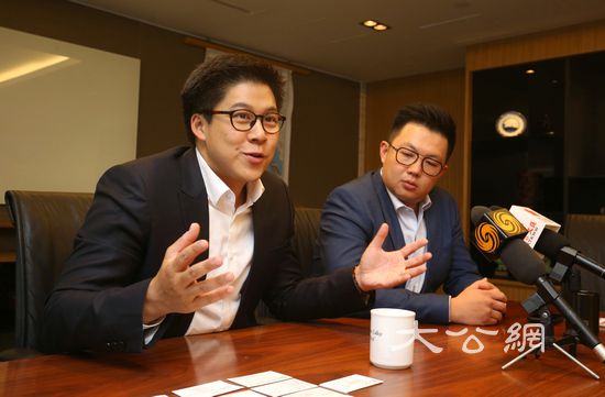 霍启刚(左一)与香港青年联会副主席梁毓伟简介行程(大公文汇全媒体记者 麦润田 摄)