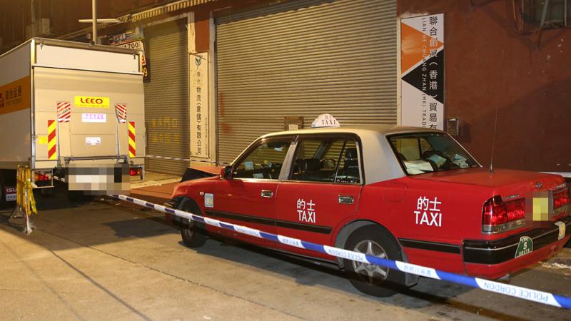 图:的士司机在葵涌永基路遇劫,警方封锁现场调查