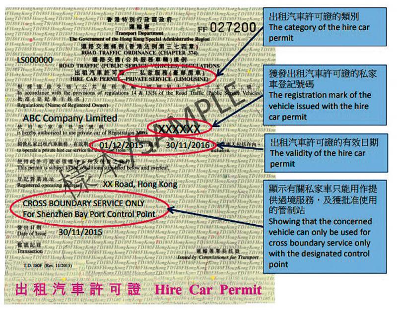 目前,出租汽车许可证分有“酒店”、“旅游”,以及“私家服务(豪华房车─过境)出租汽车”等类别,其中申请往来粤港两地过境车辆许可证,因受政府与广东省政府共同管理的配额制度规管,申请较繁复。