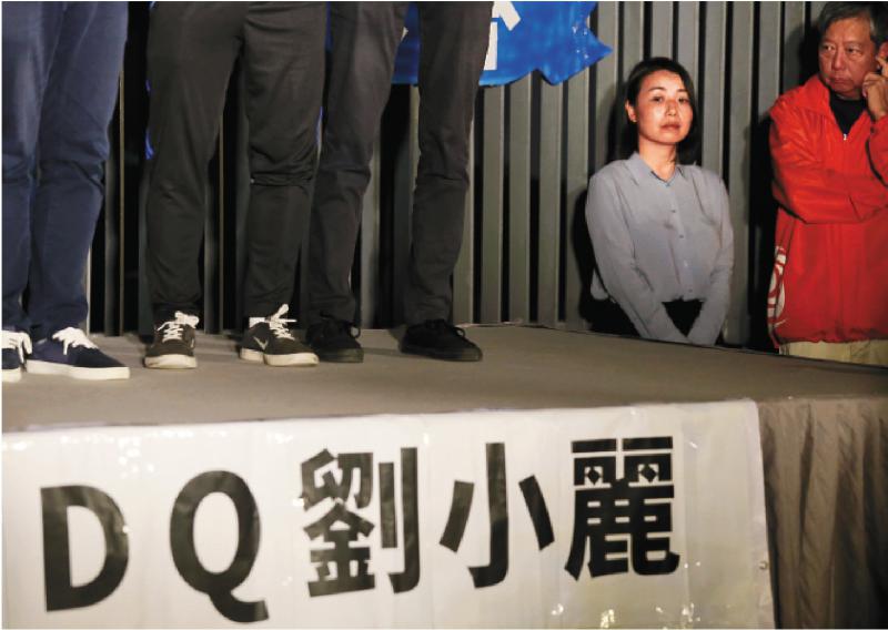 图:触碰“一国”底线暗撑“港独”的刘小丽被DQ后,在集会上“硬销”Plan B李卓人 大公报记者何嘉骏摄
