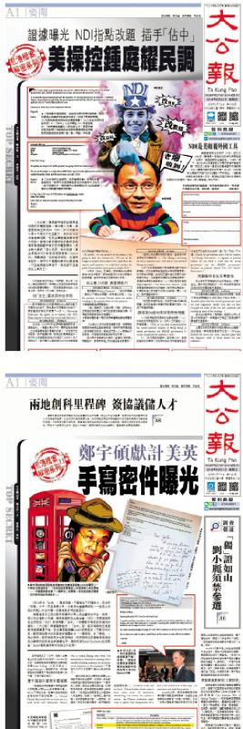 图:美英插手香港事务证据确凿,《大公报》揭露“美操控锺庭耀民调”,以及“郑宇硕献计美英”等绝密内幕