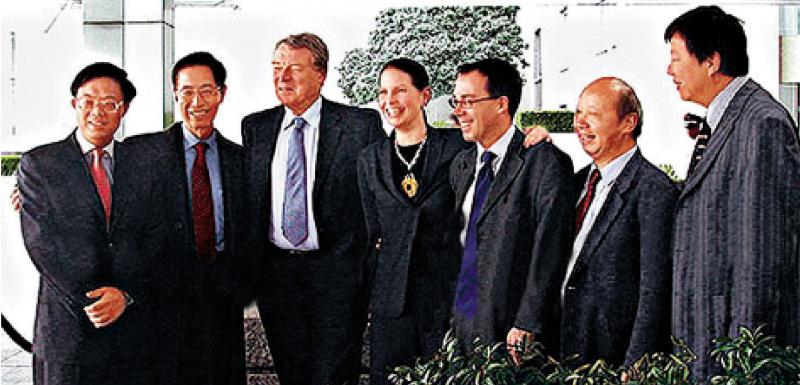 图:李卓人(右)2012年与李柱铭(左二)、涂谨申(左一)、罗沃启(右二)到美国参议院膜拜,Minky Worden(左四)及艾司敦(左三)同行/ 网上图片