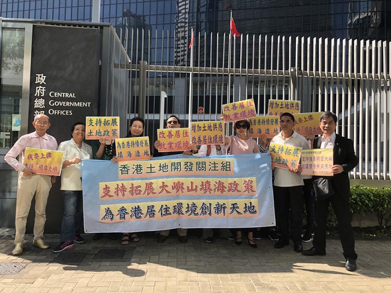 行政长官林郑月娥提出“明日大屿”计划,建议在东大屿山分阶段填海1700公顷,料可供70万至110万人居住。香港土地开发关注组昨到政府总部请愿,表示为了下一代能安居乐业,支持填海计划,认为填海是长远的土地发展计划。