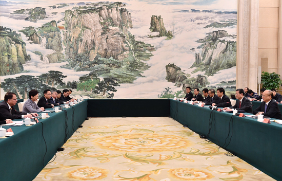 林郑月娥(左二)在河北与河北省委书记王东峰(右二)和河北省省长许勤(右一)会面