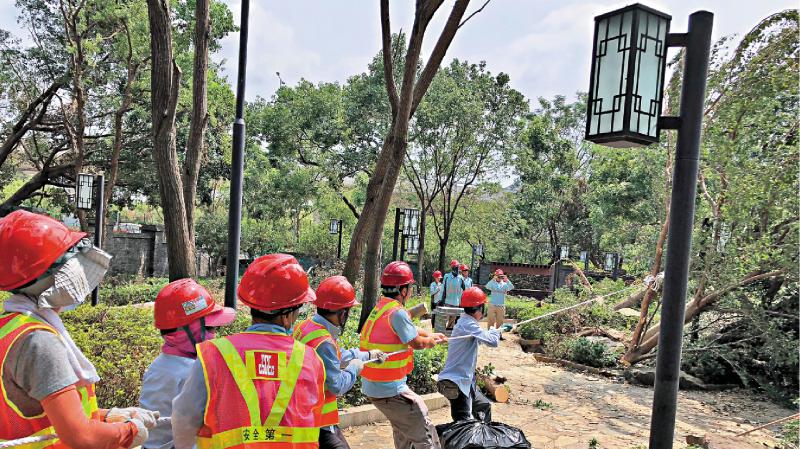 刘典祥对中建香港义工队的协助印象很深刻,他说,社区多处道路塌树,不止出入不便,“更有部分塌树存在安全隐患”,当时十多名中建香港义工看到有不少塌树足足十米高,需要专业设备;翌日,他们便带来三、四把电锯,又开了货车来,即日处理了大量危树,确保居民出入安全。