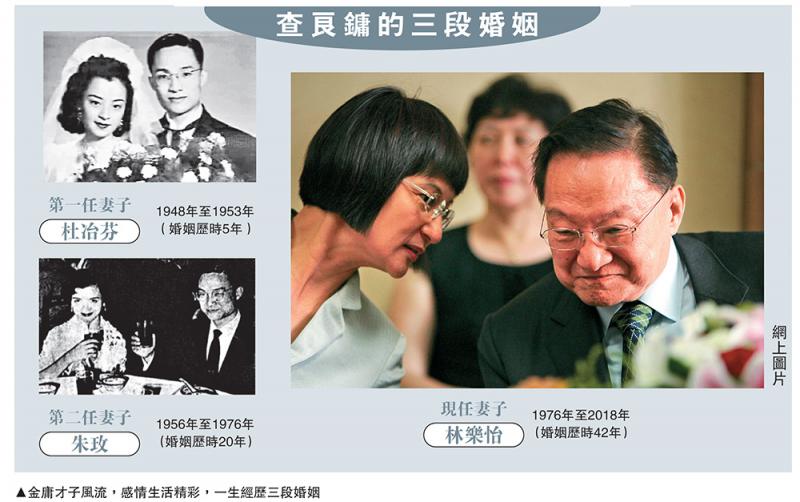 小龙女清灵、黄蓉聪明、赵敏敢爱敢恨,金庸武侠小说的女主角都个性突出,一出场即深深吸引男主角。在现实生活中,查良镛的魅力与感情生活,精彩如其小说,他犹似《天龙八部》段正淳般风流,曾有三段婚姻及一段单恋。查良镛曾公开承认,“我作为丈夫并不很成功。”/大公报记者 刘 心