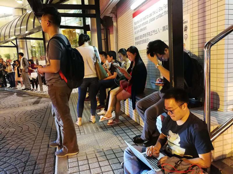 图:昨晚九时许,记者守在养和医院门口 新华社记者吴晓初摄