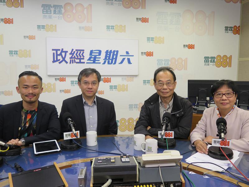 图:麦萃才(左二)形容填海创造出来的土地是“万能面粉”,可建不同类型设施楼宇。何泺生(左三)认为,土地供应处于瓶颈位置,需多管齐下增加