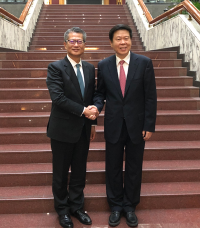 陈茂波(左)与国家税务总局局长王军(右)会面