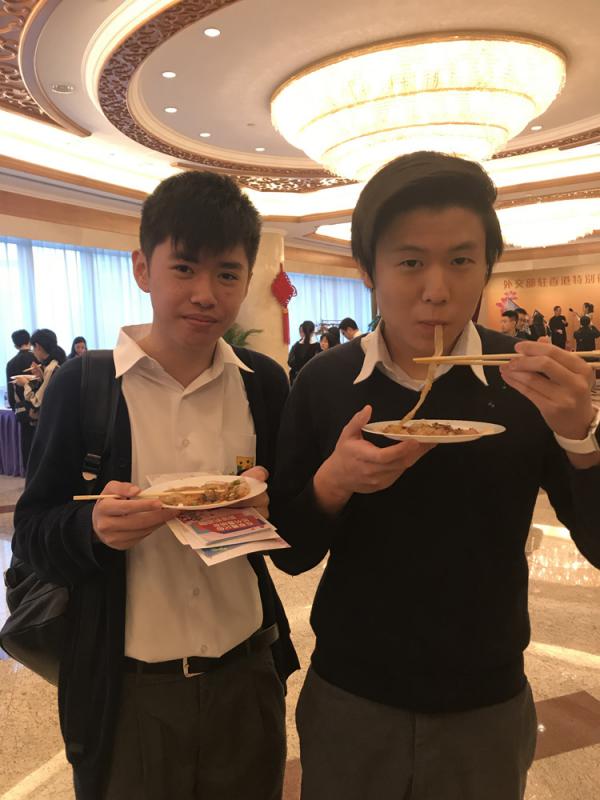 图:邓肇坚维多利亚官立中学读中五的刘同学(右)和读中四的陈同学,津津有味地吃着川北凉粉