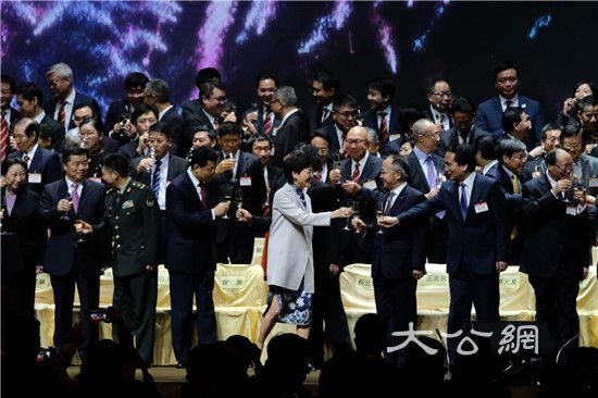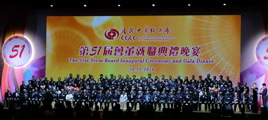 香港中华总商会第51届会董就职典礼今晚(30日)在会展中心举行,香港行政长官林郑月娥、香港中联办主任王志民、外交部驻港特派员公署特派员谢锋、解放军驻港部队副司令员田永江等嘉宾共同主礼。第四次就任中总会长的蔡冠深表示,中总会继续支持区域内产业合作,形成大湾区新增长态势。同时在多层次配合中央的进一步开放,探索大湾区新的经济发展模式。