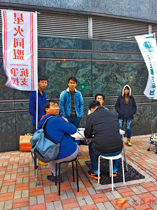 另外两个位于屯门及上水的街站,名义上虽是由其他组织发起,但实际上亦是由“民族阵线”操控。其中,上水街站全程由“民族阵线”的林达荣指挥,而屯门街站则由“民族阵线”成员麦诚轩负责。据记者观察,过去两日以“星火同盟”名义在港九新界开的5个街站,几乎没有路人愿意上前签名。