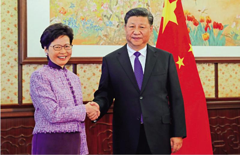 图:12月17日,国家主席习近平在中南海会见到北京述职的香港特区行政长官林郑月娥/新华社