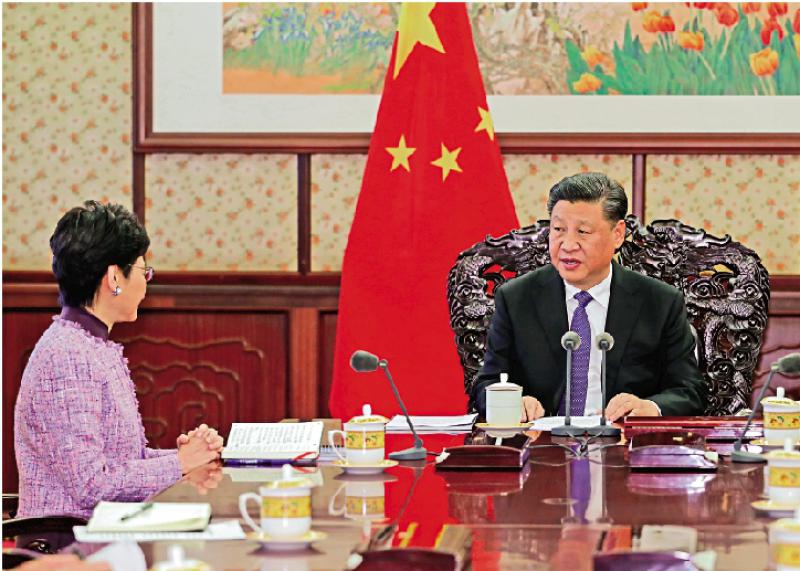 习近平在会见中表示,一年来,林郑月娥带领香港特区政府勇于担当,积极作为,坚定维护“一国两制”方针和基本法,认真谋划香港长远发展,积极参与粤港澳大湾区建设和共建“一带一路”,着力破解事关广大居民切身利益的问题,努力为青年成长和发展创造条件,体现了“志不求易、事不避难”的精神,取得了良好的成绩。中央对林郑月娥行政长官和特区政府的工作是充分肯定的。