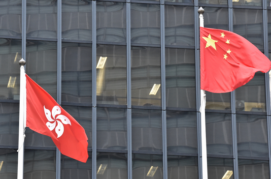 图为在政府总部外升起的国旗和区旗(中新社)