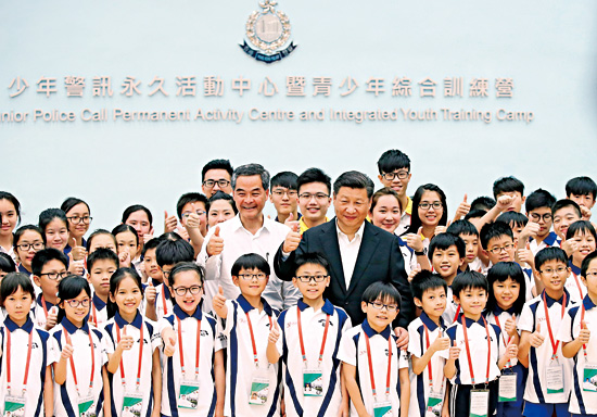 习近平于2017年6月30日视察少年警讯永久活动中心,并与少讯成员合照