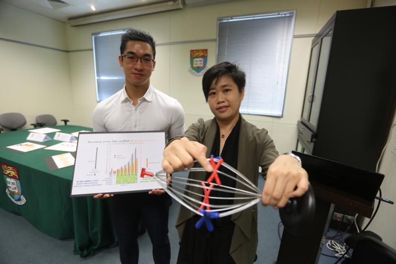 图:阮永怡(右)指出,过多或过少“着丝粒RNA”会导致染色体分配出错