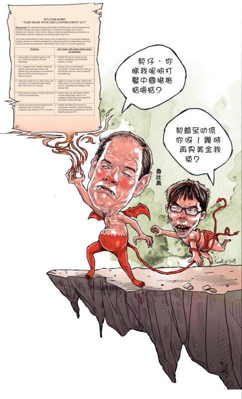 卖港派为增加政治筹码,漠视港人利益,帮美国增加贸战筹码,黄之锋便是表表者。鲁比奥一直与黄之锋及众志成员里应外合,堪称众志的洋智囊。