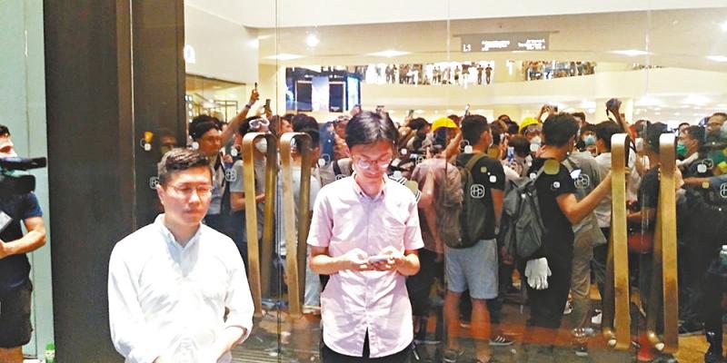 “港独”及激进组织于暴动过程中,不断发放误导和煽动年轻人暴力升级的讯息。已被列作非法社团的“香港民族党”前召集人陈浩天、香港民族阵线梁颂恒,昨日频密在Facebook上贴文更新“抗争”的实时资讯,大公报记者亦目击身穿全黑装束的陈浩天以及白衣的梁颂恒,昨日一整天穿插于政府总部一带,暗中鼓动煽动群众冲击。