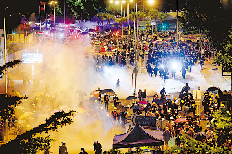 图:警方凌晨开始清场行动,一度施放催泪弹\大公报记者林良坚摄