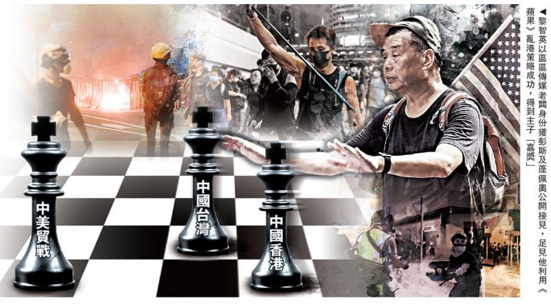 今年三月及五月,乱港派的先头部队,包括曾受黎智英捐款的陈方安生、李柱铭、李卓人先后率领公民党及众志等人面见彭斯、蓬佩奥,揭开反修例国际舆论战幕。6月至今的夺权风暴《苹果日报》报道极富煽动性,如七一暴徒冲击立法会,《苹果》附送的“逆权六月”内附抗争手语,让暴徒当日实地应用。