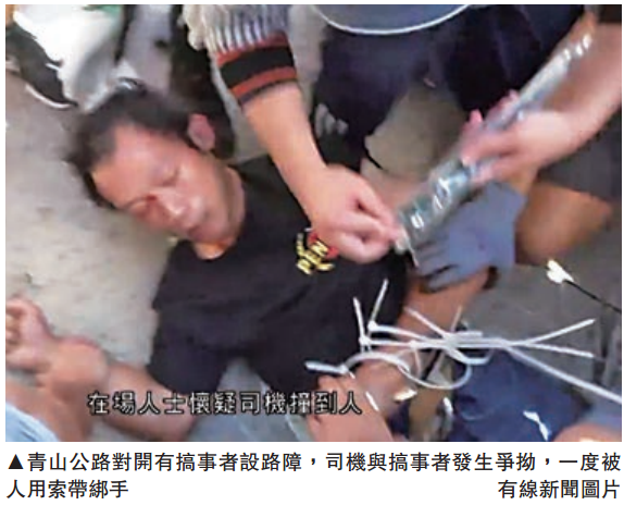 【大公报讯】突发组报道:暴徒横行霸道,四处逞凶!昨日阻塞全港交通主干道,导致大小车辆无法通行,更令路面险象环生,有司机及看不过眼的市民自发清理道路障碍物时,竟遭暴徒滥用私刑,捆绑手脚!