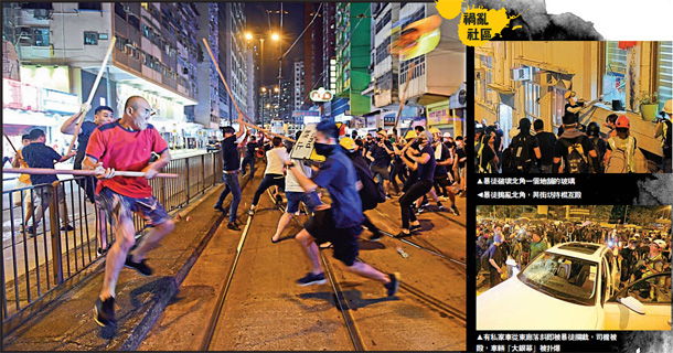 暴徒昨日的行动仍获乱港派以“举办和平集会”的名义提供掩护,暴徒亦为各区行动分别设网上通讯群组联络。