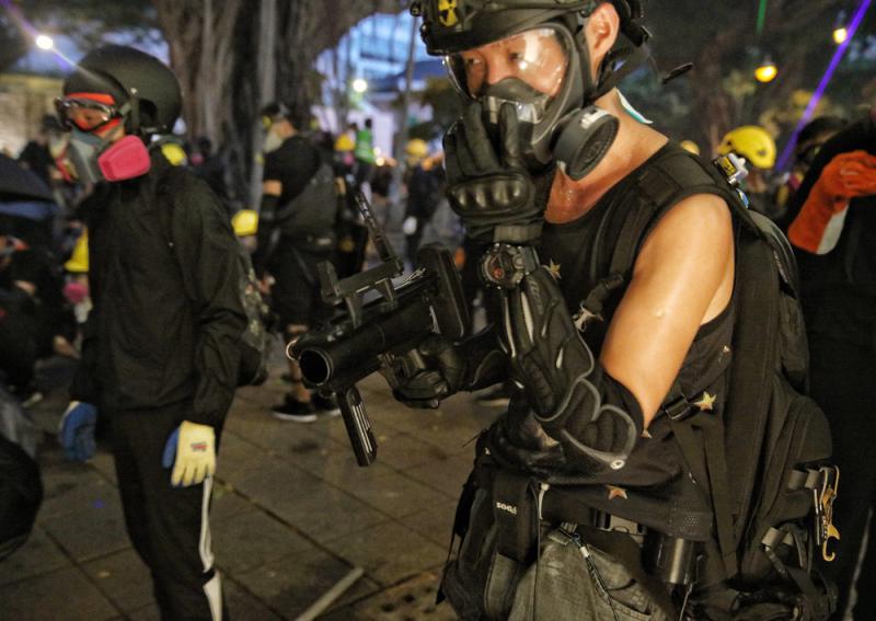 图:暴徒武力再升级,使用仿制榴弹发射器射击警员