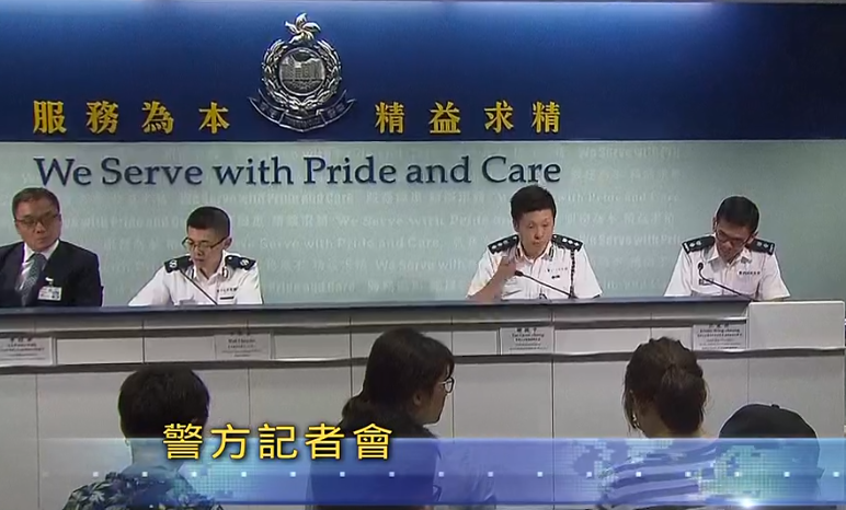 图:香港警方今日(14日)下午举行例行记者会(视频截图)