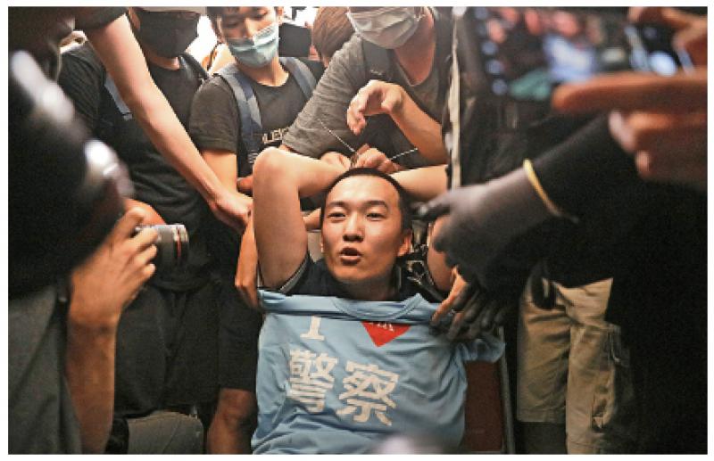 图:付国豪前晚在机场遭暴徒捆绑并殴打,仍勇敢喊出“支持香港警察”