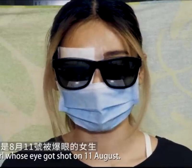 从影片中看到,该名女子贯彻暴徒一贯形象,身穿黑衣、戴墨镜及口罩,右眼则蒙着纱布,未露出真容。影片同时经过声音处理,根本难以确认是否与当日被射伤右眼的为同一人,暴徒亦有意隐藏她的真正身份。