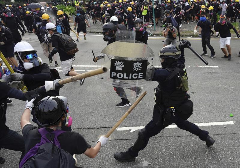 图:近数月暴力冲击中,蒙面暴徒频频在前线出现