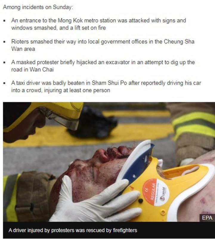 然而,暴徒不满“被写衰”,竟称BBC“抹黑”,疯狂投诉,短时间内令BBC的投诉系统陷入瘫痪状态,最终BBC“循众要求”,补了“的士司机撞伤途人”的“前因”,至于司机被困、被扑车、被抢軚等等“再前因”,当然无补到啦。怪不得暴徒喜欢外媒了。原来可以动辄干预新闻自由,影响报道内容。外媒不是要捍卫编采自主吗?四个月的暴乱,国际社会通过外媒报道,究竟知道多少暴徒乱港的“真相”呢?