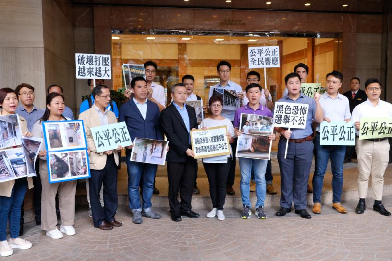 图:新界跨党派受打压的区议会选举参选人到湾仔选管会及政总递交请愿信