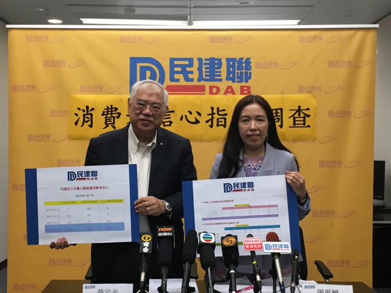 图:进出口界议员黄定光(左)及民建联中委张思颖发表消费者信心指数调查