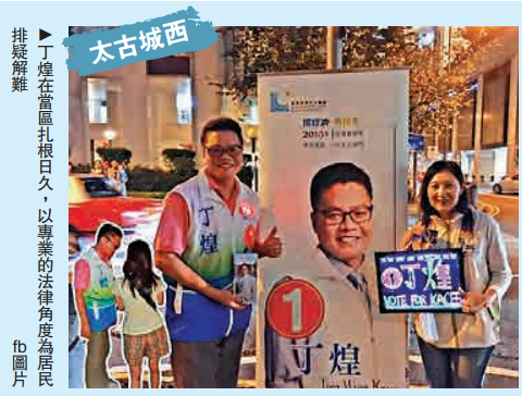 经民联大律师丁煌将硬撼在“太古城西”盘踞多年的“民主动力”召集人赵家贤。自今年六月暴乱以来,赵家贤多次出现在暴乱及示威活动当中,甚至为暴徒指路避开警察追捕。不过,赵家贤于8月11日的暴乱中,在鲗鱼涌港铁站内利用自己熟悉地形的优势为暴徒指路,但暴徒一出站就被守候在外的警方一网成擒。“泛暴派”内部即刻有不少人质疑其刻意“送人头”,赵事后急急在社交网站解释,却愈描愈黑。该事件之后,赵家贤仍然不思反省,继续不断到暴乱现场“抽水”,近日在太古城被市民咬伤耳朵。相比之下,丁煌在该区扎根日久,以专业的法律角度积极为当区居民排疑解难,颇获市民好评,此消彼长之下,胜负只在一线之间。