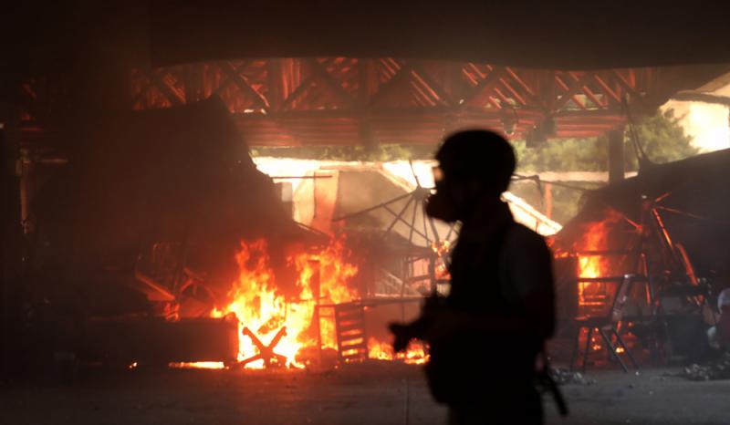 图:暴徒于理大校内纵火燃烧杂物,校园顿变火海