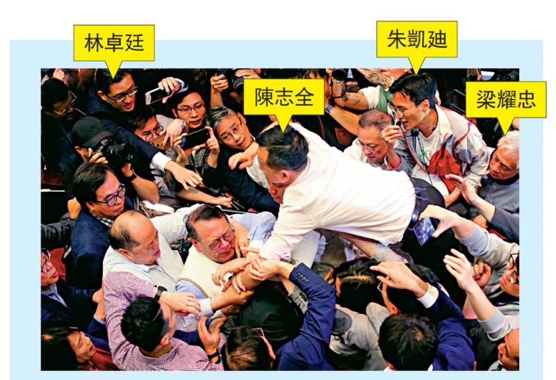 图:七名泛暴派立法会议员在五月十一日修逃犯例法案委员会上,涉嫌袭击或妨碍其他开会议员而触犯《立法会(权力及特权)条例》条文