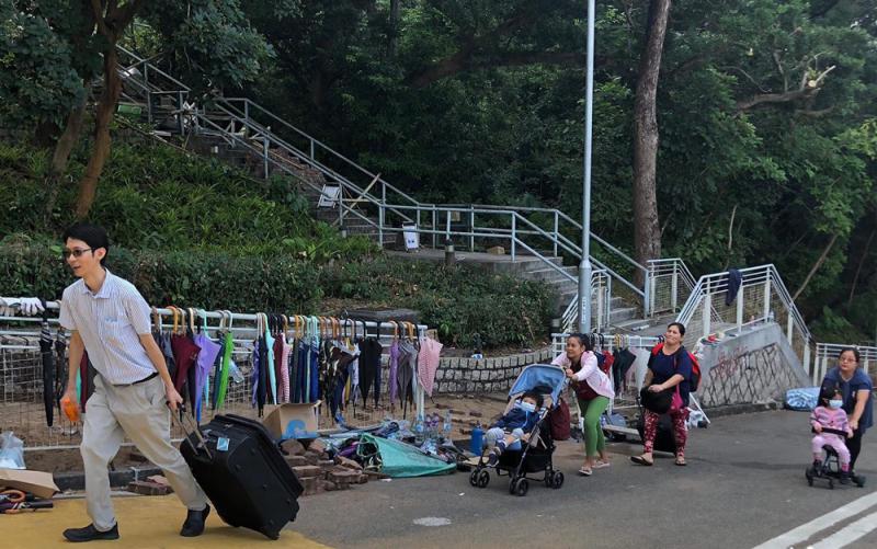 图:中大沦暴徒基地,众多教职员拖家带口避难 网上图片