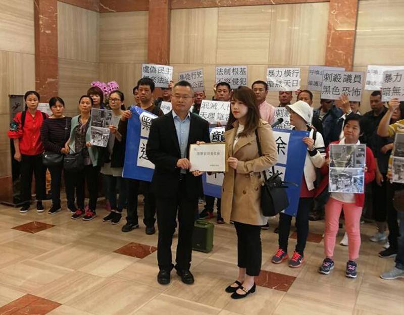 图:“选举关注群组”昨前往选举事务处请愿,谴责暴徒袭击建制派候选人