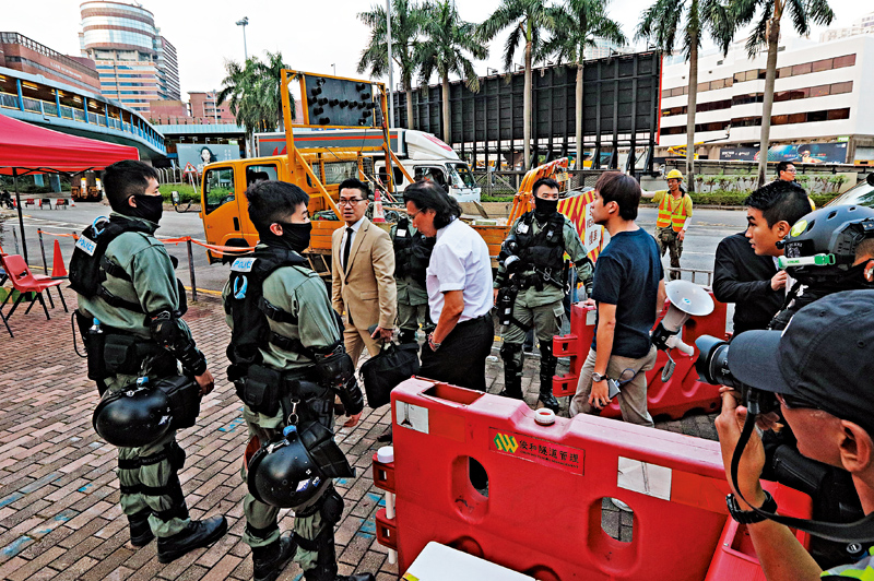 图:警方准许范国威及黄国桐等五人入理大,寻找仍在留守的暴徒\大公报记者摄
