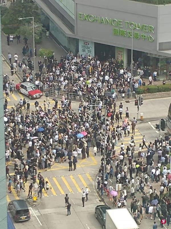 同一时间,大批戴口罩的乱港分子在观塘骏业街游乐场聚集,并走马路沿牛头角方向前行,沿途有人用杂物堵路,多名防暴警察到场戒备,经大半小时后乱港分子见集会人数不多,无瘾自行散去。至于中环方面,亦有数十名乱港分子在交易广场附近的天桥集合,十多名防暴警察在场戒备。