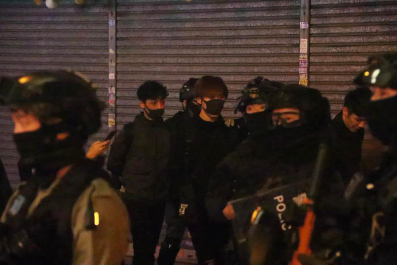 图:有暴徒在旺角涉嫌非法集结,被警方拘捕\大公报调查组摄