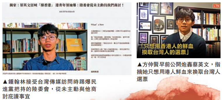 钟翰林近日踢爆蔡英文虚伪真面目,则随即引起蔡英文拥趸口诛笔伐,声称他是“鬼”、为蔡英文对手拉票云云。结果钟翰林与早前的方仲贤一样,要事后“澄清”并非“指摘”云云。至于钟翰林提出的质疑,民进党方面并无回应,不再像近月消费香港暴乱般兴致勃勃。
