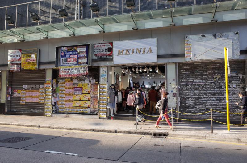 图:香港经济在黑暴揽炒下百业萧条,商区闹市随处可见执笠关门的吉铺\大公报记者摄