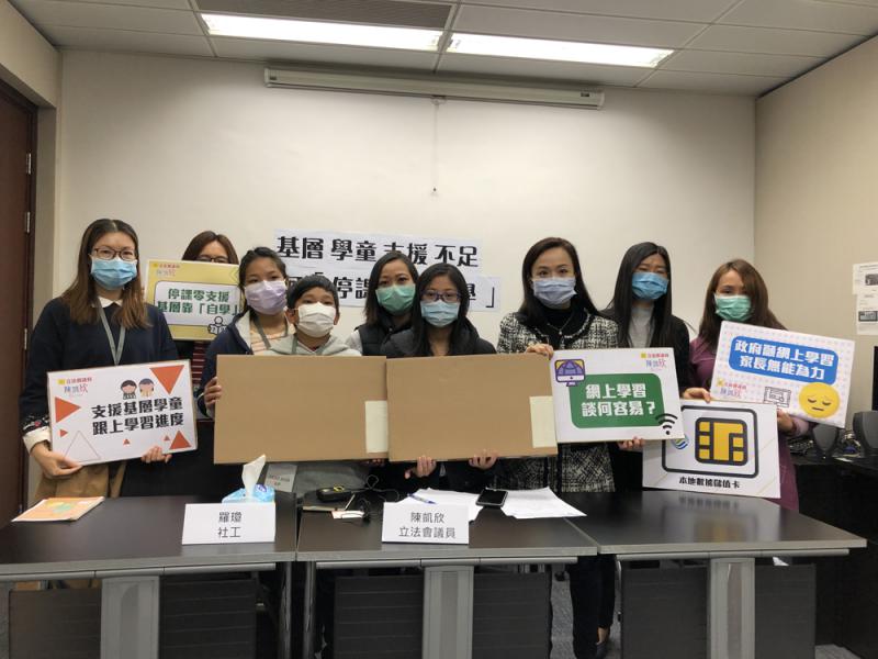 一家六口租住?房的陈女士称,每月屋租一万元,担心丈夫被公司裁员,不敢购买电脑。学童家长李女士称,以往有课后支援班辅导孩子做功课,现在于家中透过网上学习,她不懂教孩子做英文功课,她感到精神压力很大。