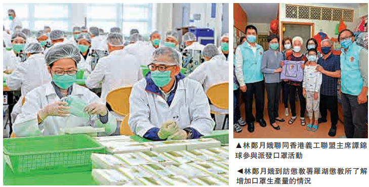 林郑月娥赞扬惩教署人员及义工队成员心系香港,在疫情期间日以继夜生产口罩,表现出无私的服务精神。她衷心感谢人员的付出,深信只要所有市民和他们一样同心抗疫,香港一定能战胜疫情。