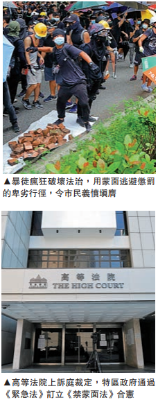 图:高等法院上诉庭裁定指出,很多大规模游行和示威演变成暴动,而大部分暴徒以蒙面逃避严重犯罪行为的责任,因此,对于非法集结及未经批准下集结,禁止蒙面是“为达至正当目的之所需”